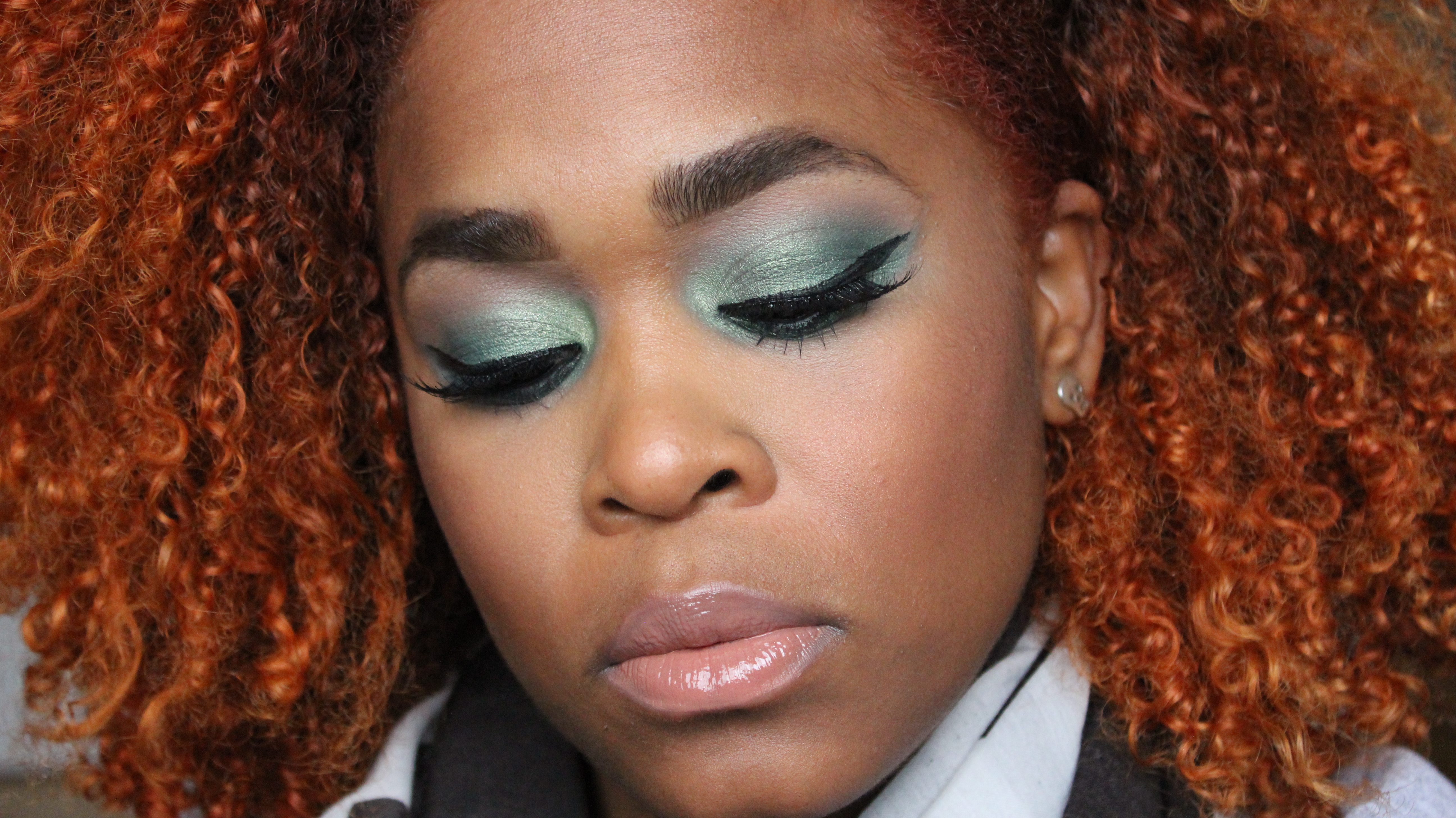 Lower lash line Morphe #28 (black). MakeUpGeek Creme Brûlée in the crease to soften the green color.