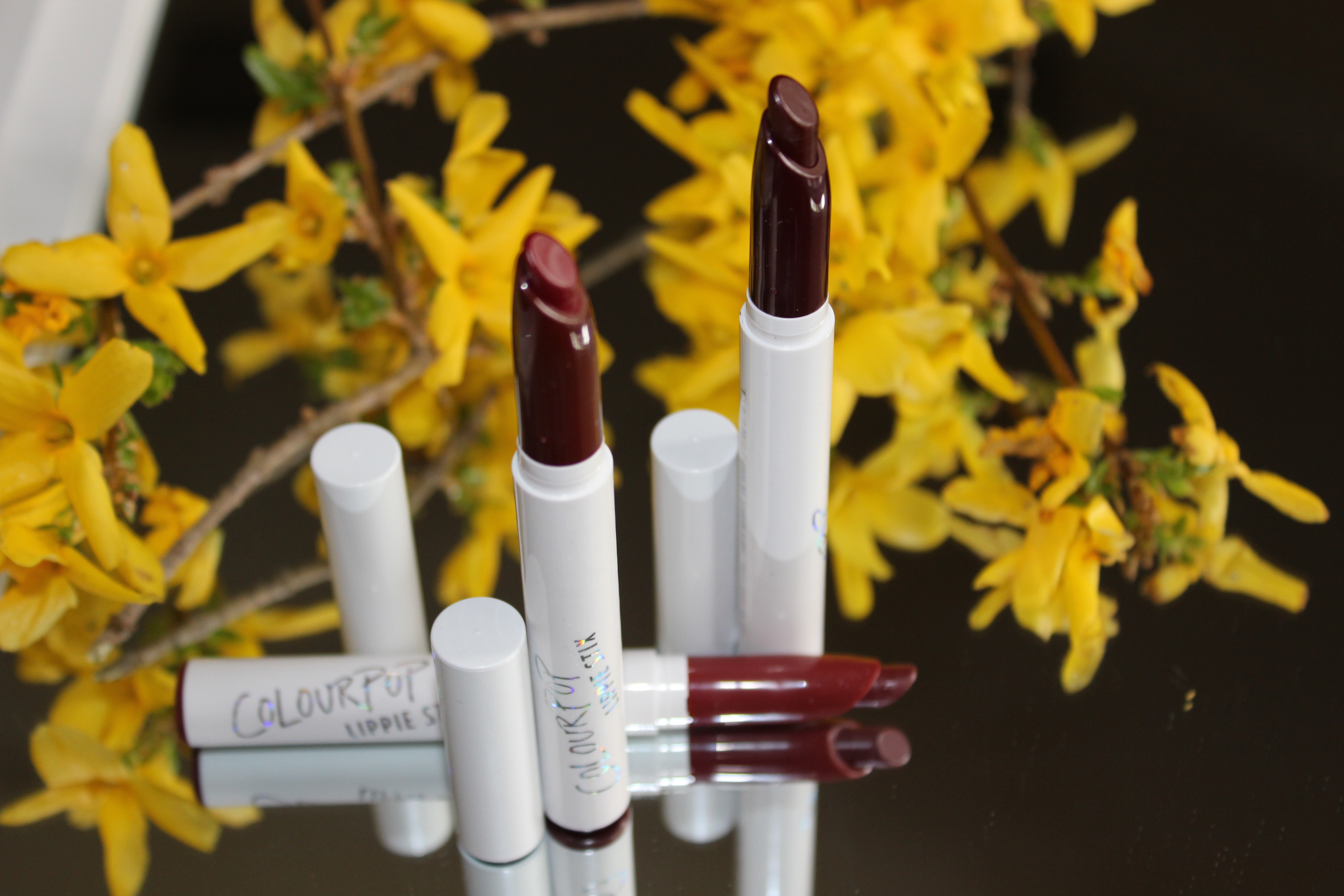 Lippie Stick colors from Left to Right: Creature is a deep burgundy red and Cookie is nude beige color that has a pretty matte finish to it.